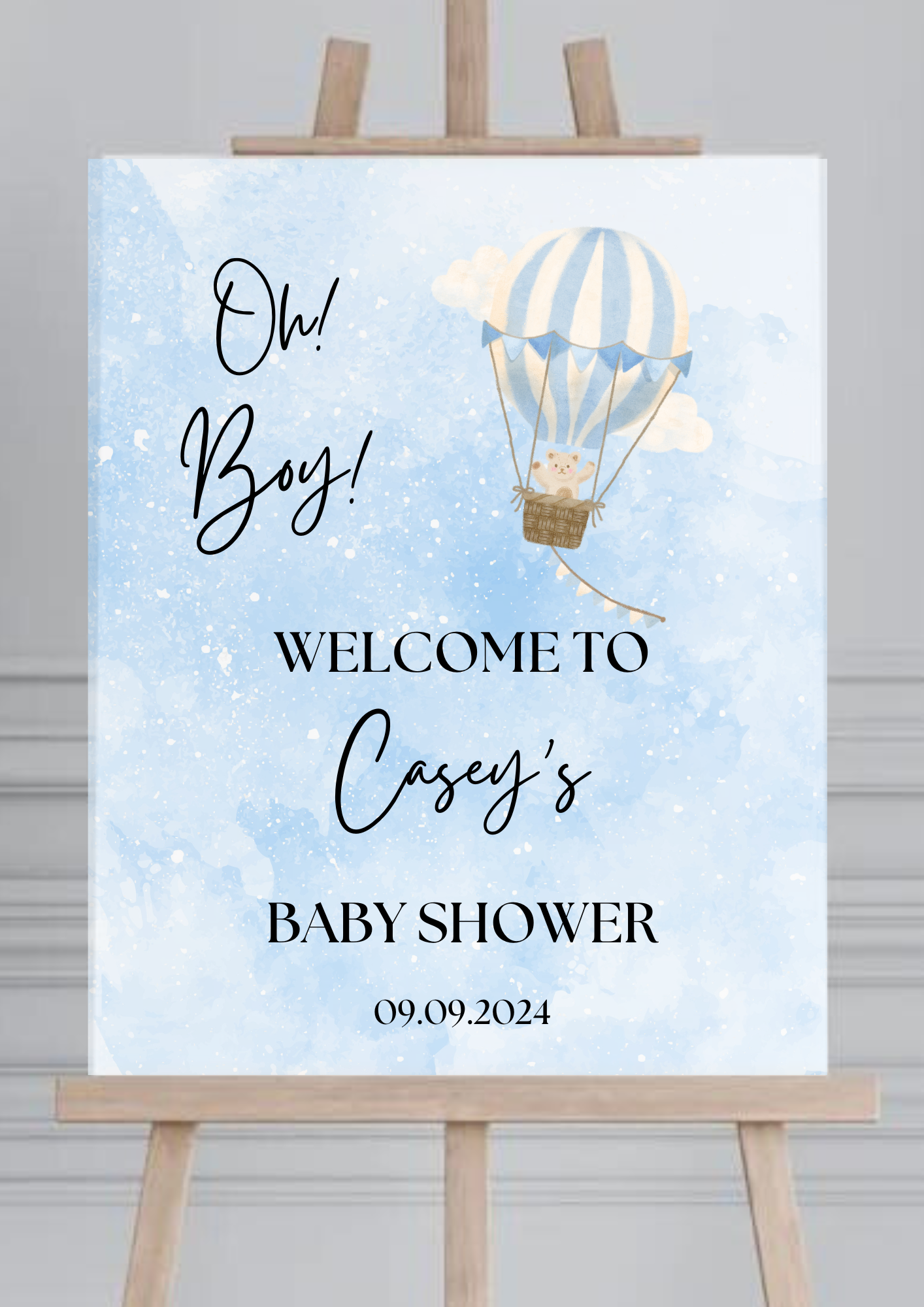 Shop personalised baby shower decorations including A2 foam boards, foam sticks, and...