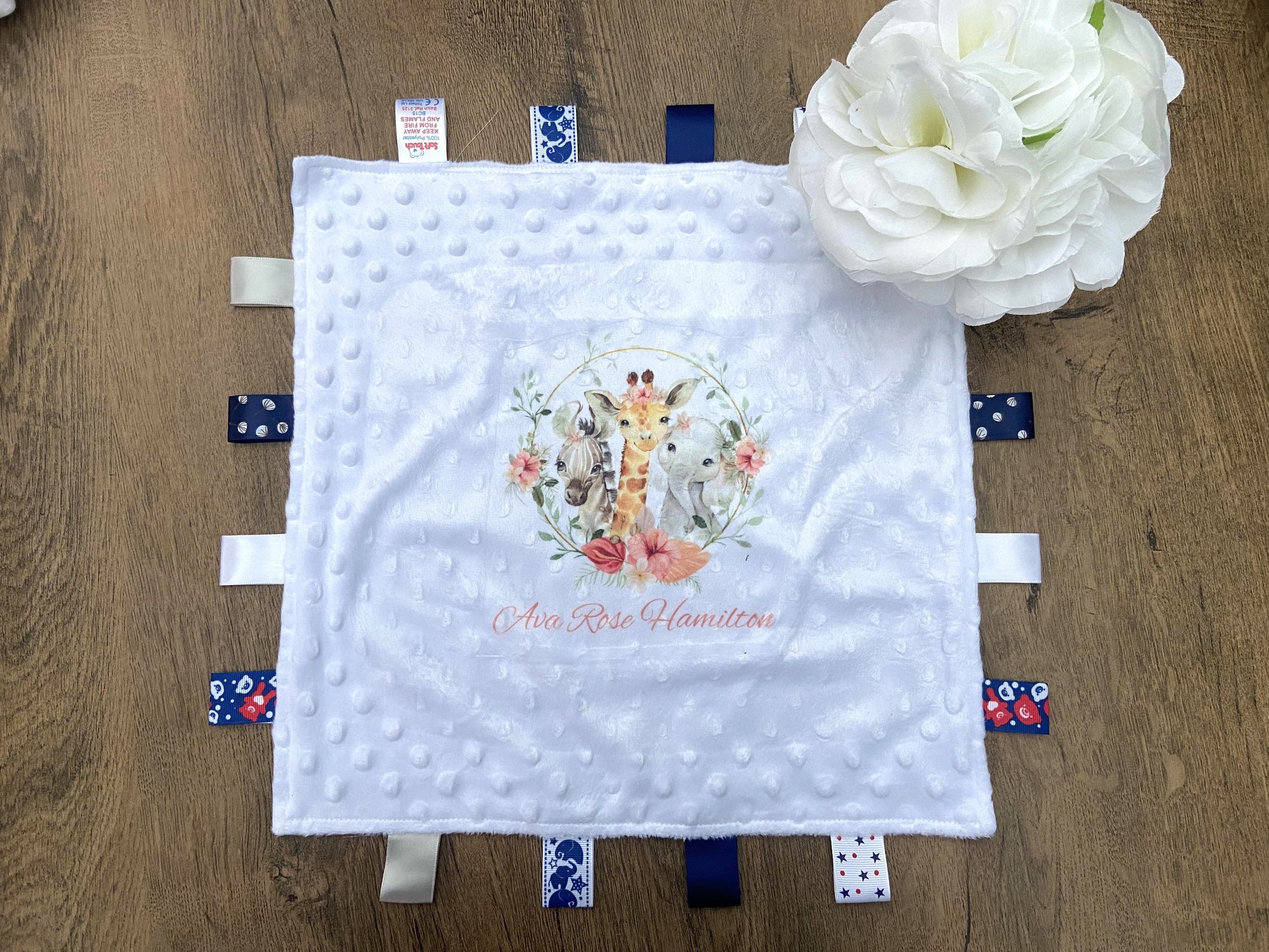 Personalised baby comforter super soft and snuggly, this comforter is a must-have for new-borns , baby showers, and birthdays. Personalise it with a name, initials ,date of birth and weight. The options are endless. Choose from 18 designs for a truly unique and sentimental touch.