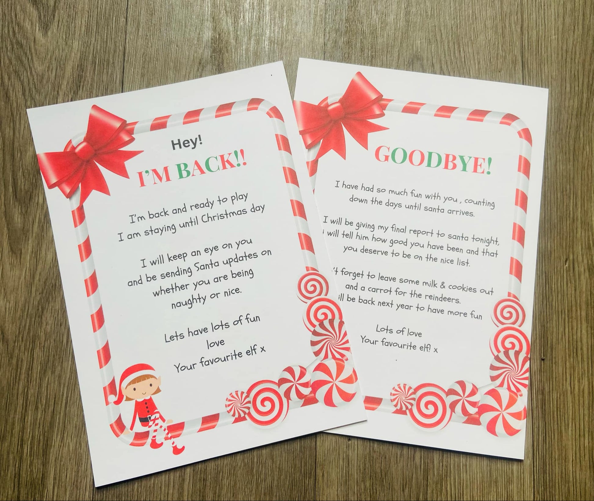 Make your Elf on the Shelf tradition extra magical with these beautifully designed Elf "I’m Back" and "Goodbye" letters. Perfect for welcoming your elf’s arrival at the start of December and saying farewell on Christmas Eve, They add some extra joy to the Christmas season and can be used year after year. They can also be personalised with your childs/childrens name.