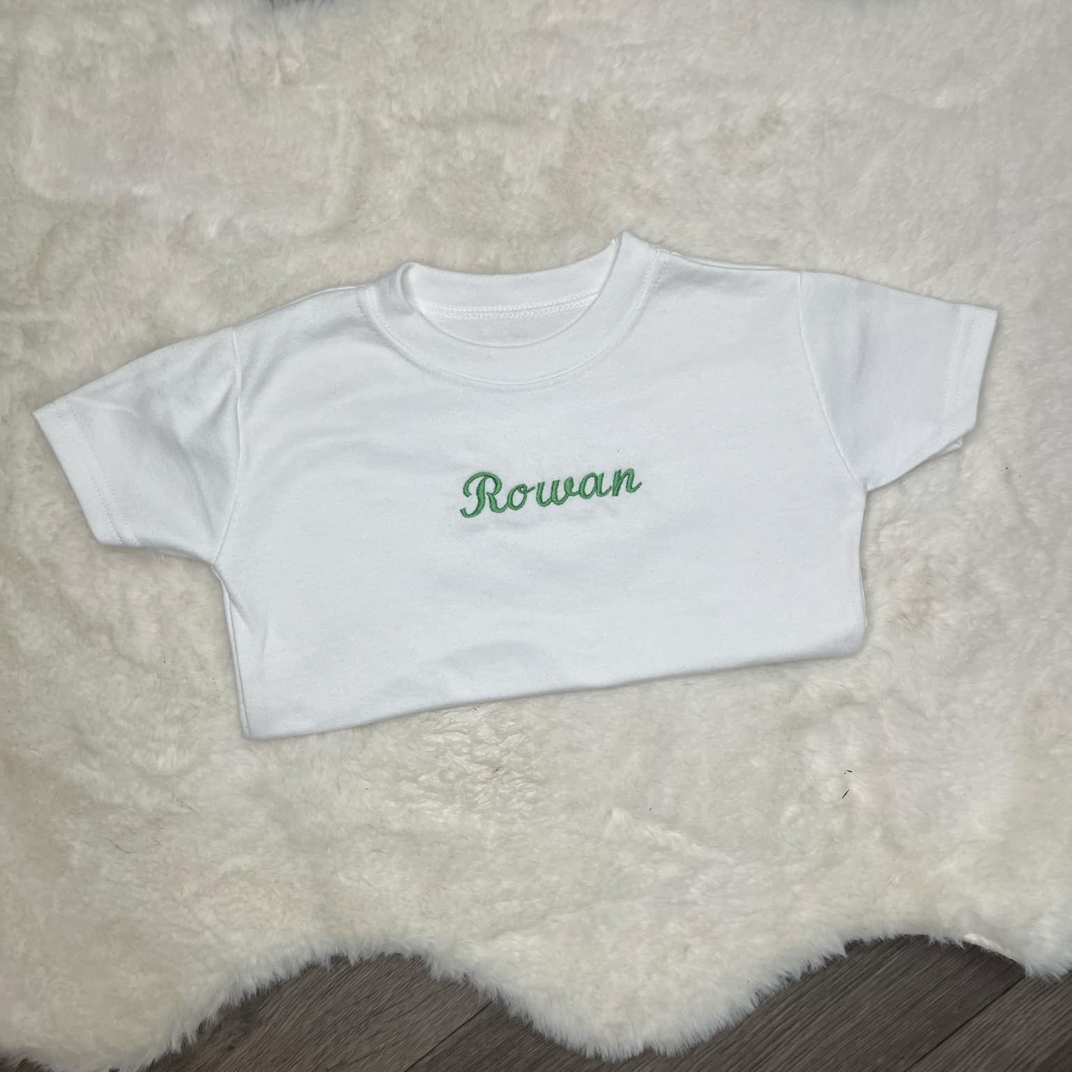Perfect for everyday. Choose from a range of different threads, available in sizes 1-2 to 10 years. If you'd like a bigger size please email us . Name can be place in the middle or to the side depending on your preference .Made from cotton.