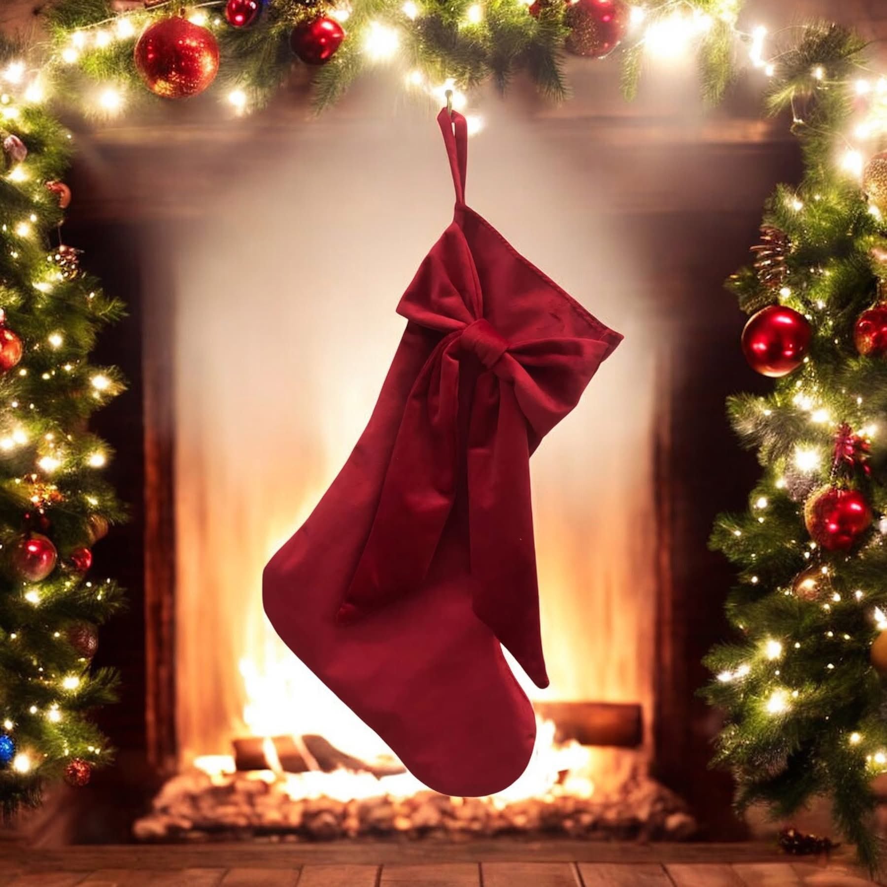These gorgeous Christmas must haves come in 4 vibrant colours red ,blue ,cream and pink. Each stocking can be personalised on the bow tails with a name, family name or initials with a colour of your choice . The Christmas stocking can also be plain for a more Traditional Christmas look.