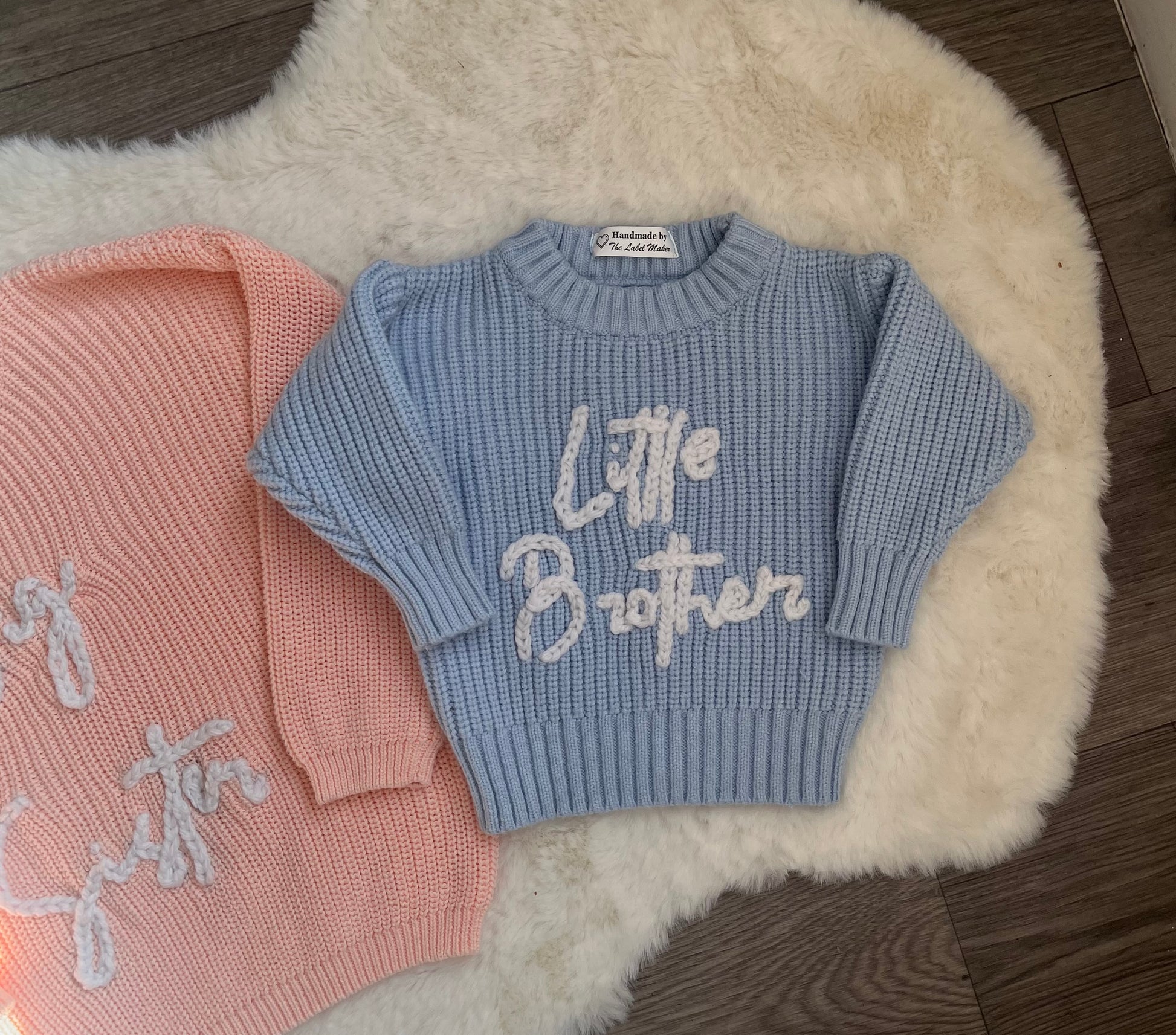 Personalised Hand Embroidery Brother/Sister Knitted Jumper