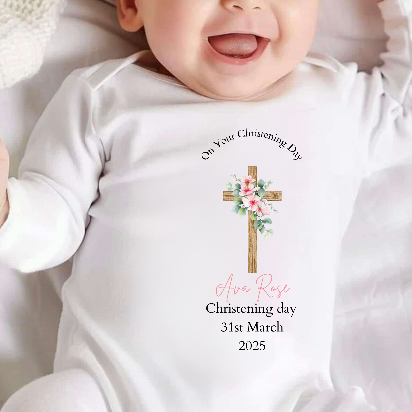 Our personalised christening baby vests and sleepsuits are a beautiful choice for little ones celebrating their special day. Available in sizes from newborn up to 12 months, each piece is made from soft, breathable cotton to keep your baby comfortable while looking extra special. These keepsake garments can be personalised with your child’s name, and there is also the option to add christening details such as the date, church, or a meaningful message. The thoughtful design makes them perfect for the morning of the christening, for photographs, or as a treasured gift from family and godparents. Whether you choose a vest for warmer days or a sleepsuit for extra cosiness, this personalised outfit is a lovely way to mark the occasion and create lasting memories