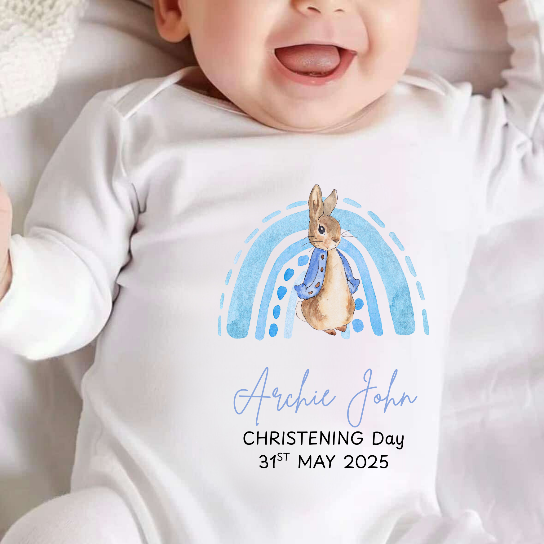 Personalised Rabbit On Your Christening Day Sleepsuit