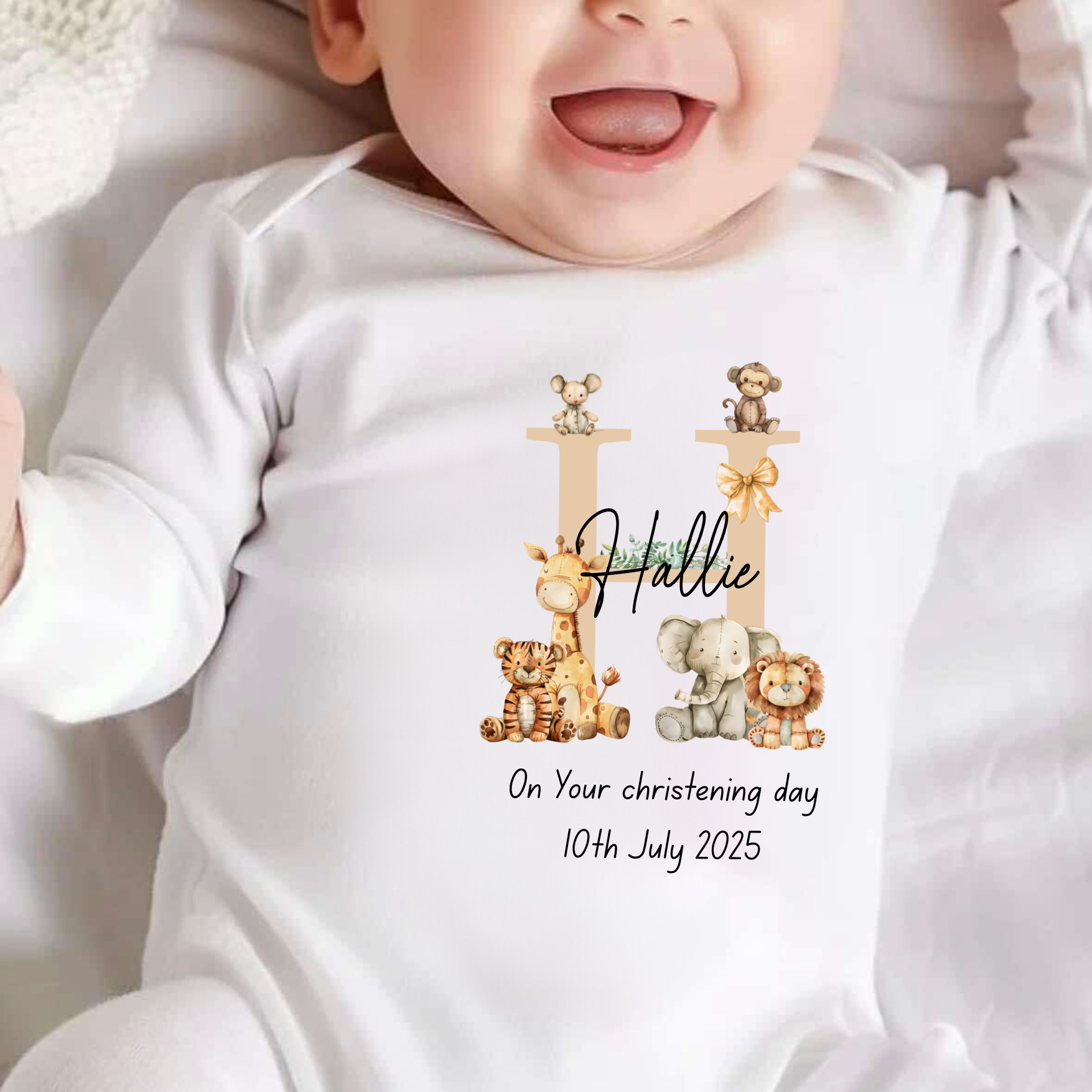 Personalised Safari On Your Christening Day Sleepsuit