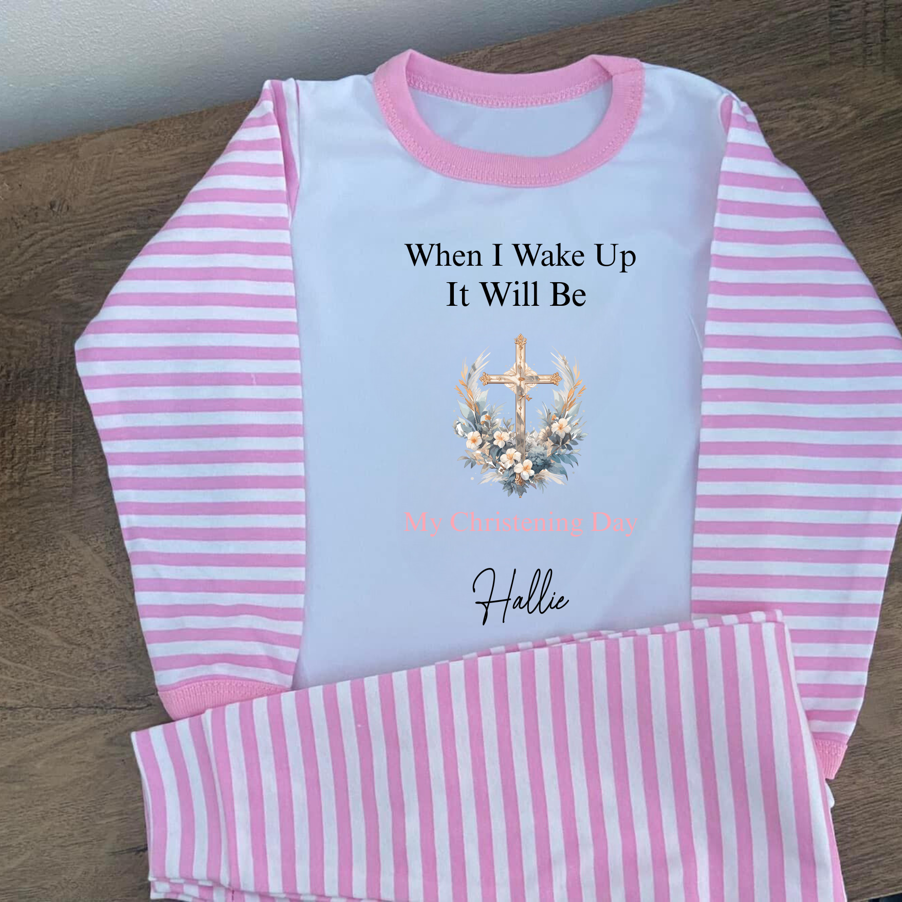 Personalised When I Wake Up It Will Be My Christening Day Cross Pyjamas