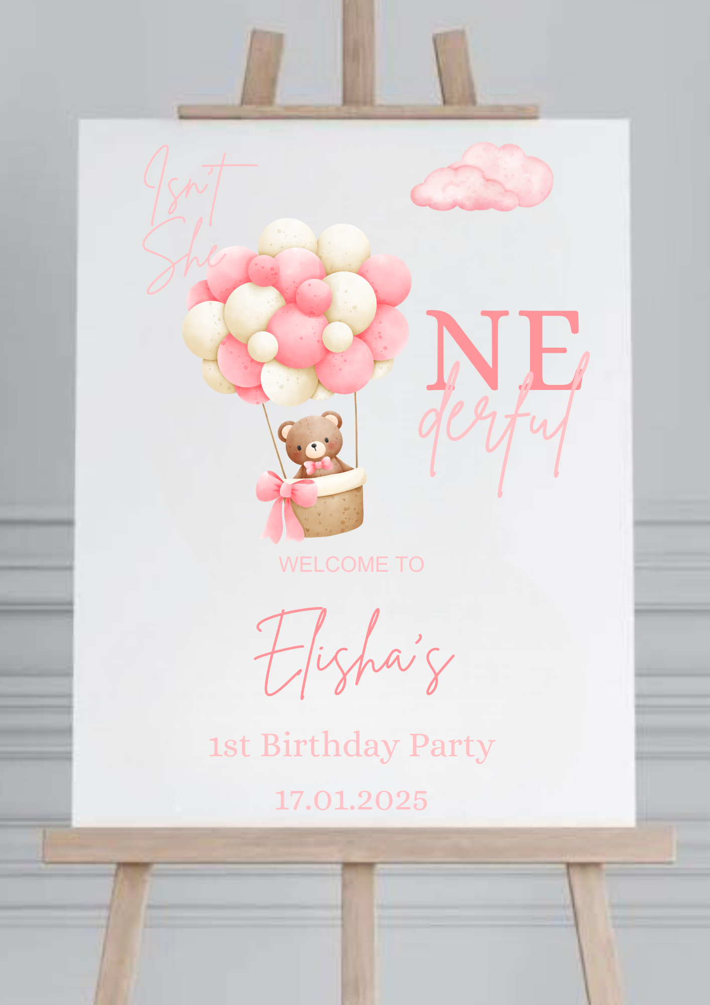 Personalised pink Isn't she Onederful Birthday Welcome Board